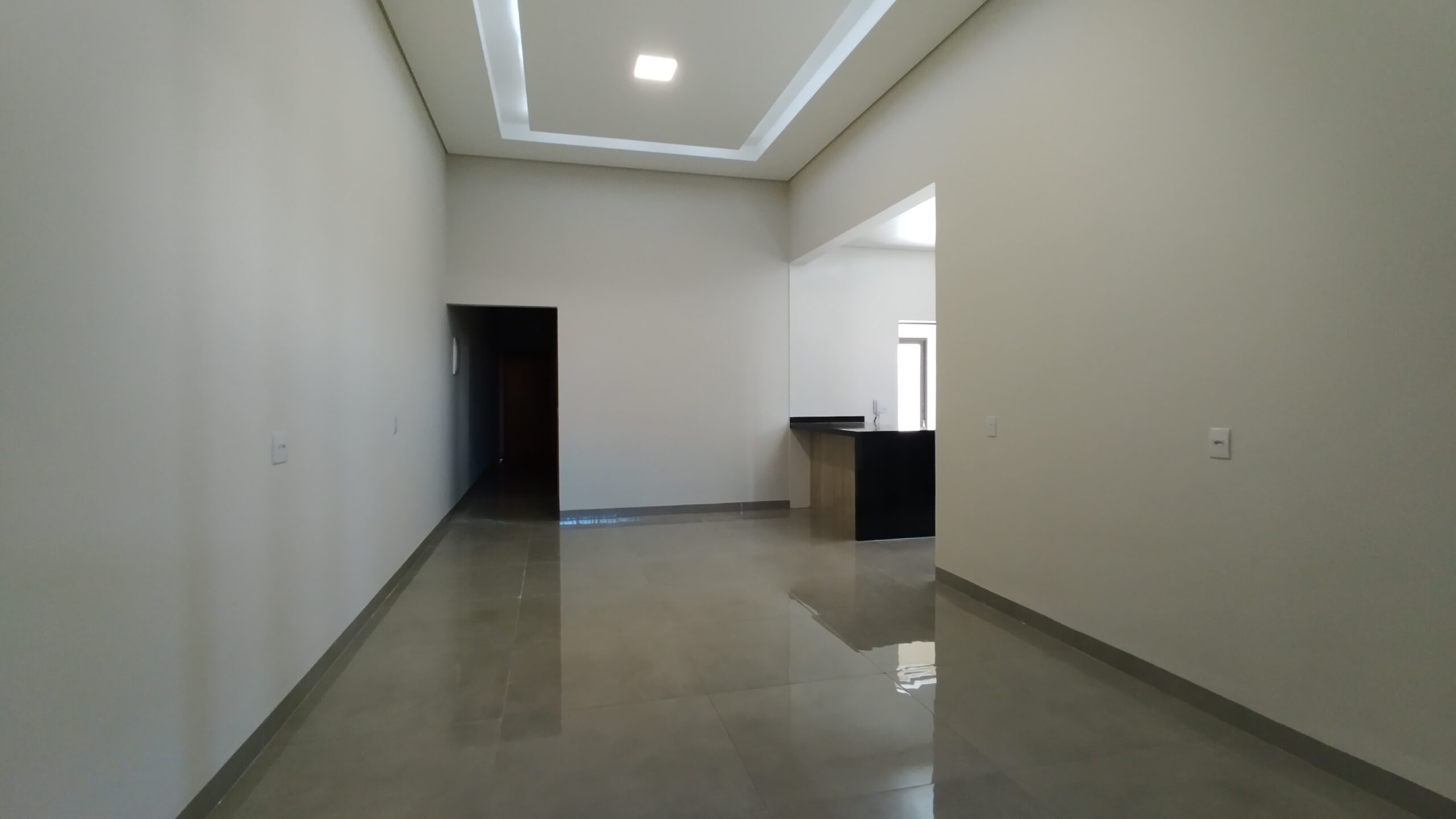 Ao entrar, uma sala ampla e iluminada com pé direito alto, te recebe com uma sensação leve e acolhedora, perfeita para montar aquele cantinho especial de convivência. Imagine seus móveis novos, a decoração dos sonhos e o cheirinho de casa nova no ar.